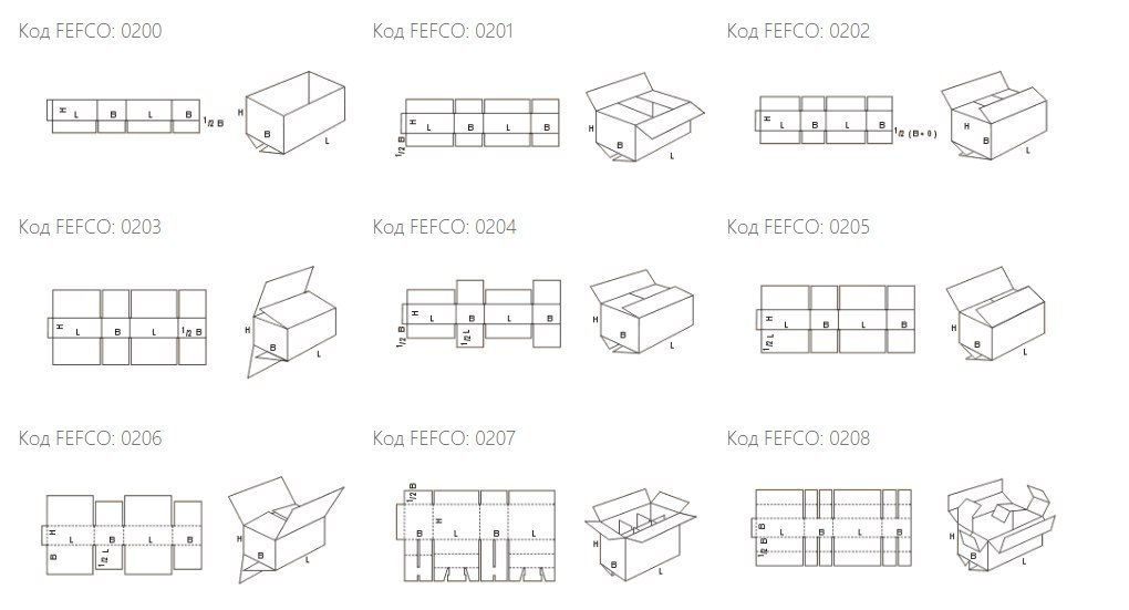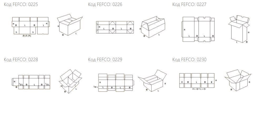 Складные ящики упрощенной конструкции, выполненные из одной выкройки с клапанами крышки и дна, с боковым швом, при скреплении которого клеем, скобками или липкой лентой образуется боковая обечайка.