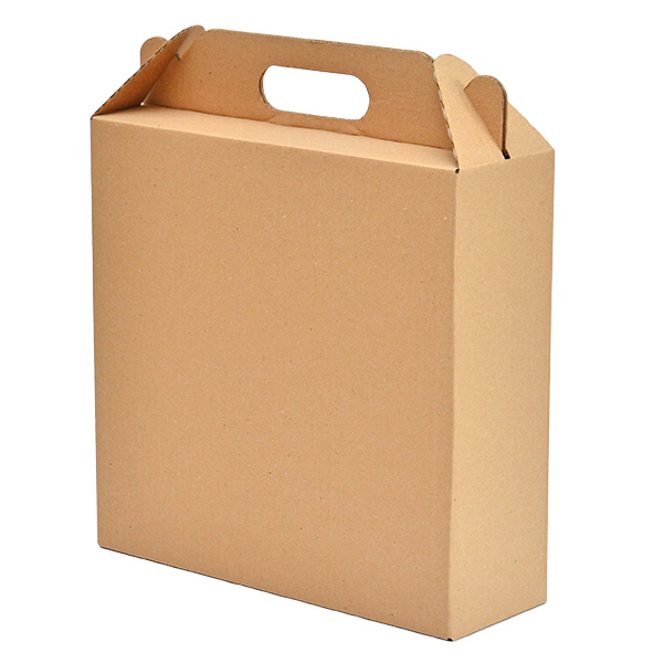 Гофрокороб в форме чемоданчика или гофрокороб с ручкой может быть исполнен двумя способами в зависимости от ручки: ручка может быть частью общей конструкции или может являться дополнительной фурнитурой из другого материала (чаще всего из пластика).